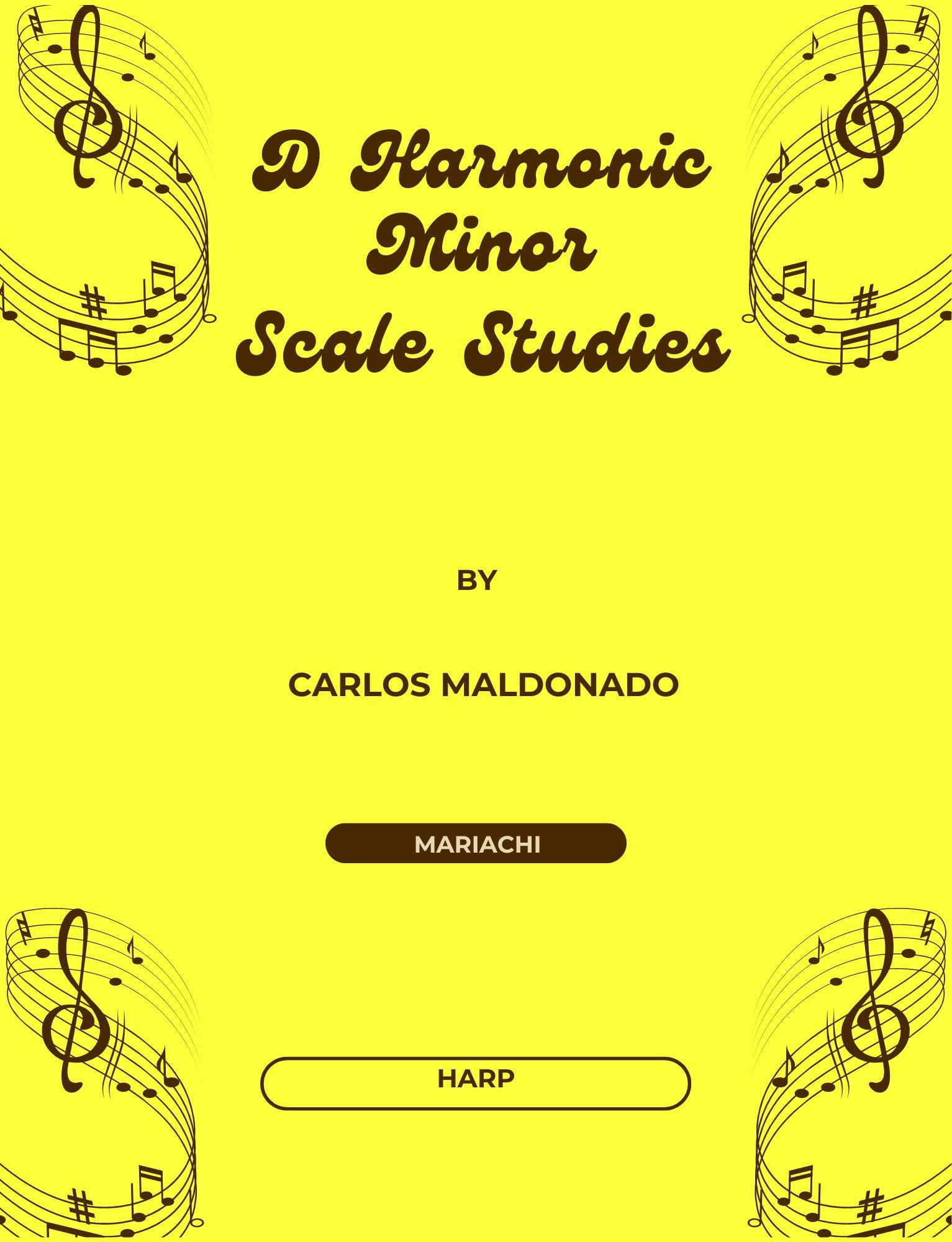 This is the harp part to a collection of 85 different scale exercises utilizing the D harmonic minor scale for the mariachi ensemble. The collection starts in the time signature of 4/4 followed by 3/4 and ends with scales in 2/4. Scales include rhythms in whole notes, half notes, dotted half notes, quarter notes, dotted quarter notes, eighth notes, dotted eighth notes, sixteenth notes, quarter notes, eighth note triplets, and syncopated patterns in each time signature. The harpist will practice scales, alternating left and right-hand parts and chords to the different rhythms. The collection would be an excellent accompanying resource for the Rhythm and Melodic Worksheets Books 1 and 2 and the Progressive Armonia Studies book series by the same author; Carlos Maldonado.
